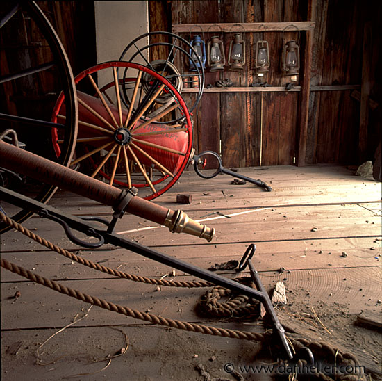 These are the old fire engines and hoses used to actually fight fires! Their excellent condition is ironic, since it was a series of devastating fires that caused everyone to abandon the town over the years.